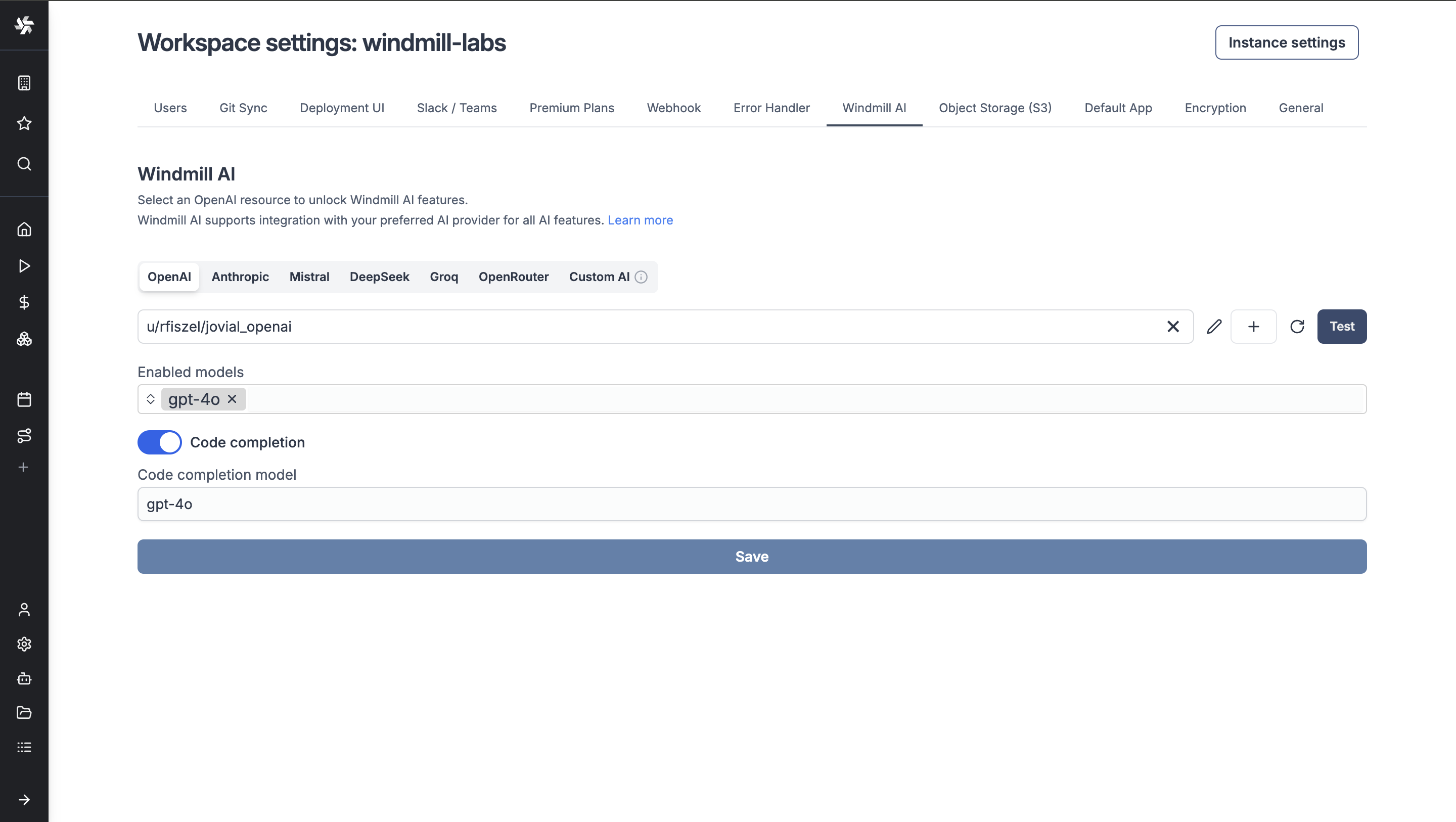 - Support for all major AI providers including OpenAI, Azure OpenAI, Anthropic, Mistral, DeepSeek, Google AI (Gemini), Groq, OpenRouter, Together AI, and custom AI endpoints.