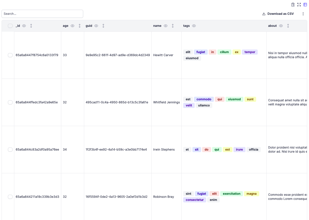 The AgGrid infinite table component allows you to display an Ag Grid table with infinite scrolling.
